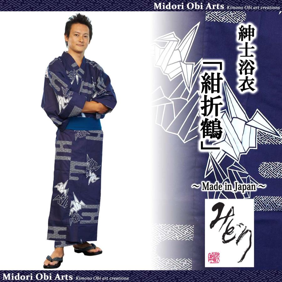 浴衣 日本製 旅館浴衣 帯付 浴衣セット 男性 紳士 メンズ 着物 和装 部屋着 ルームウェア M Lサイズ 紺折鶴 Ymok Midori Obi Arts 通販 Yahoo ショッピング